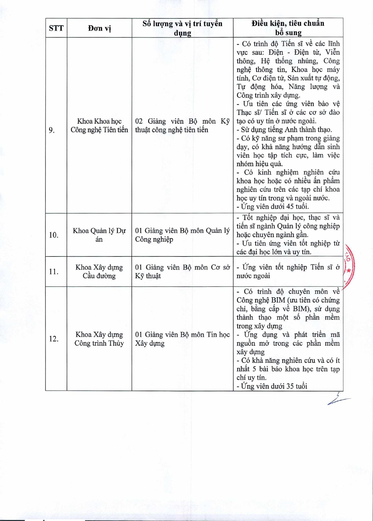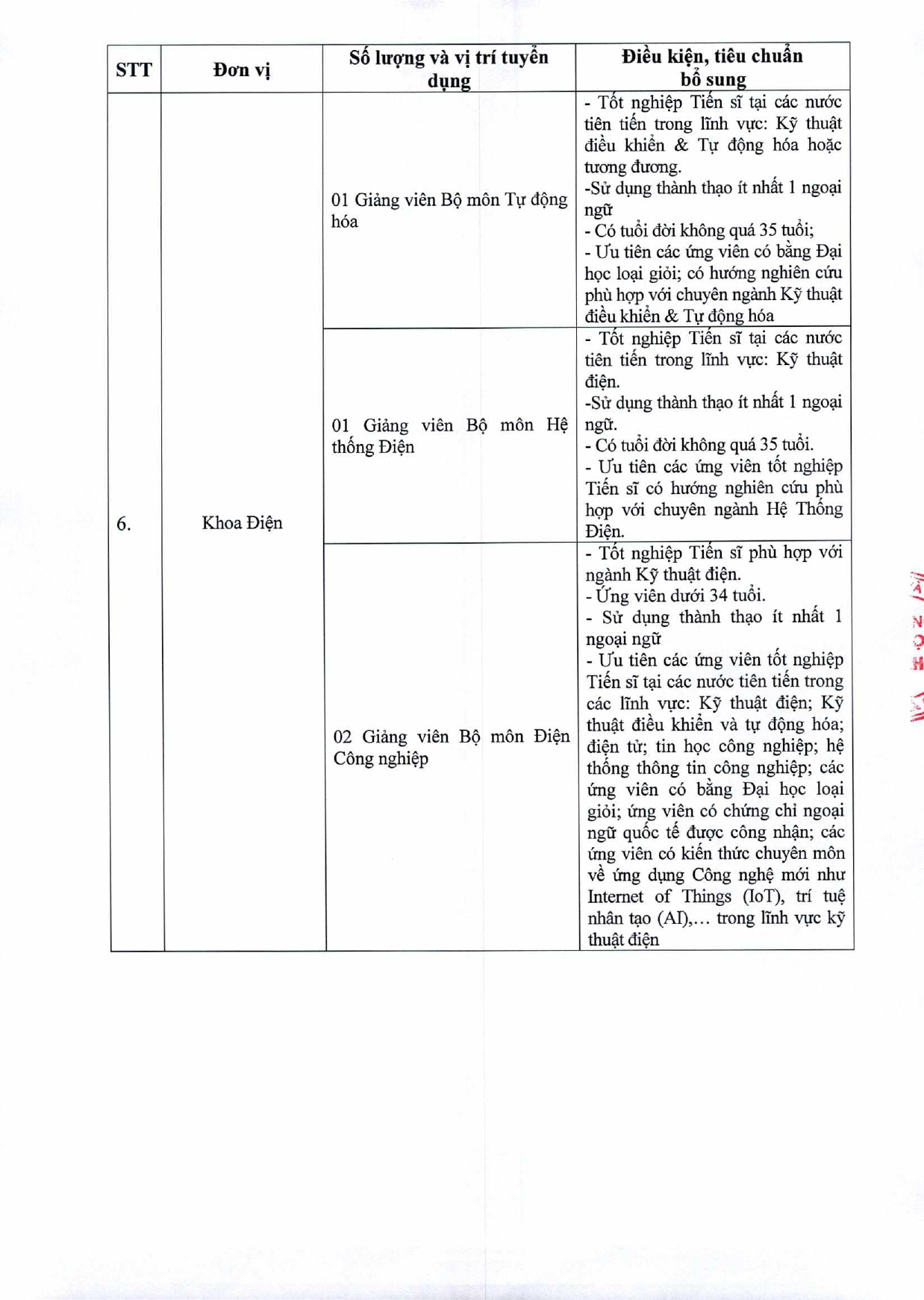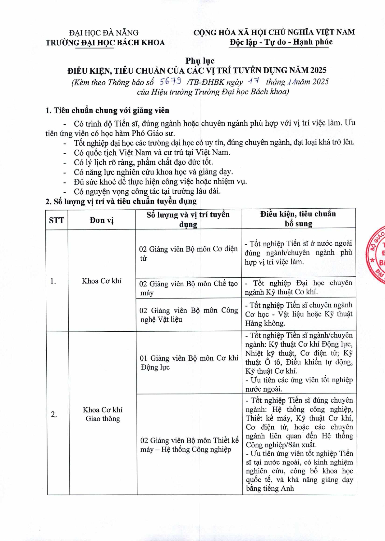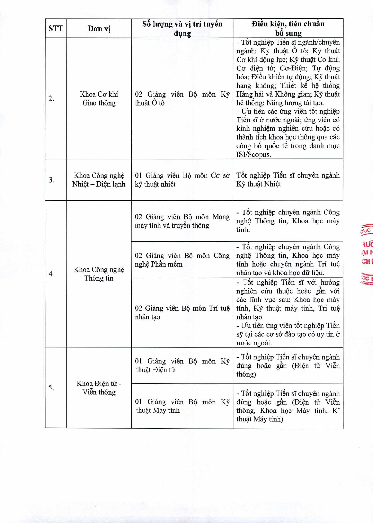 Nhằm bổ sung nguồn nhân lực chất lượng cao đáp ứng yêu cầu đào tạo và nghiên cứu khoa học, Khoa Cơ khí thông báo tuyển dụng giảng viên năm 2025 như sau: