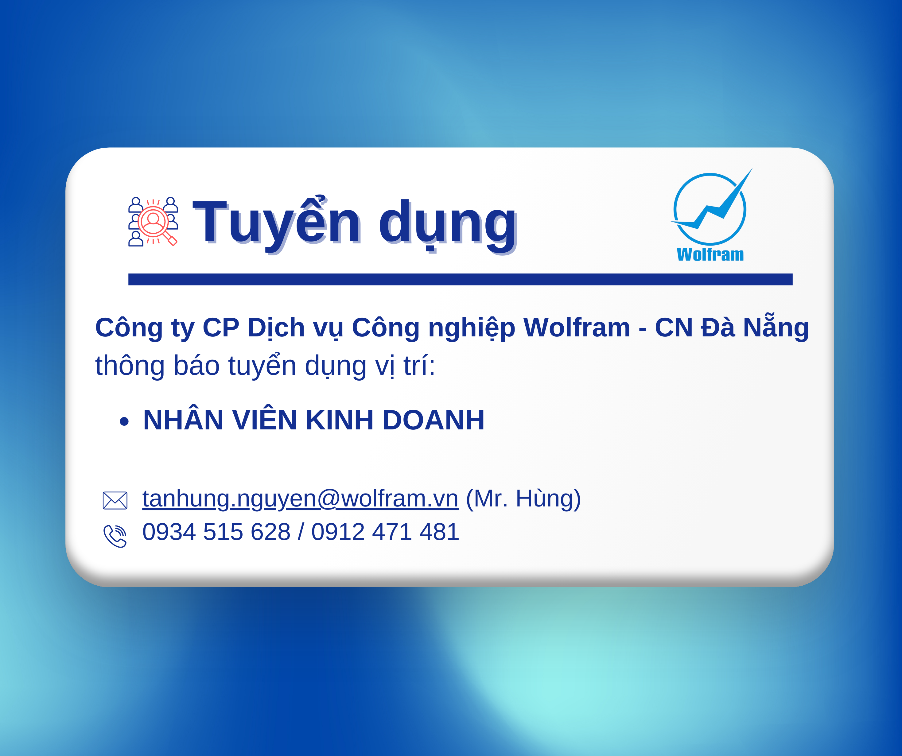 WOLFRAM ĐÀ NẴNG TUYỂN DỤNG NHÂN VIÊN KINH DOANH (SALE)